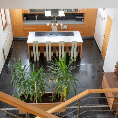 Popis: 4 oddělené ložnice + 1 na galerii v patře, obývák s krbem, kuchyně, 2x koupelna s WC, zimní zahrada, celkem 220 m2